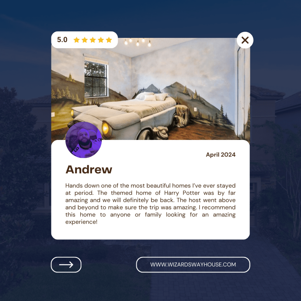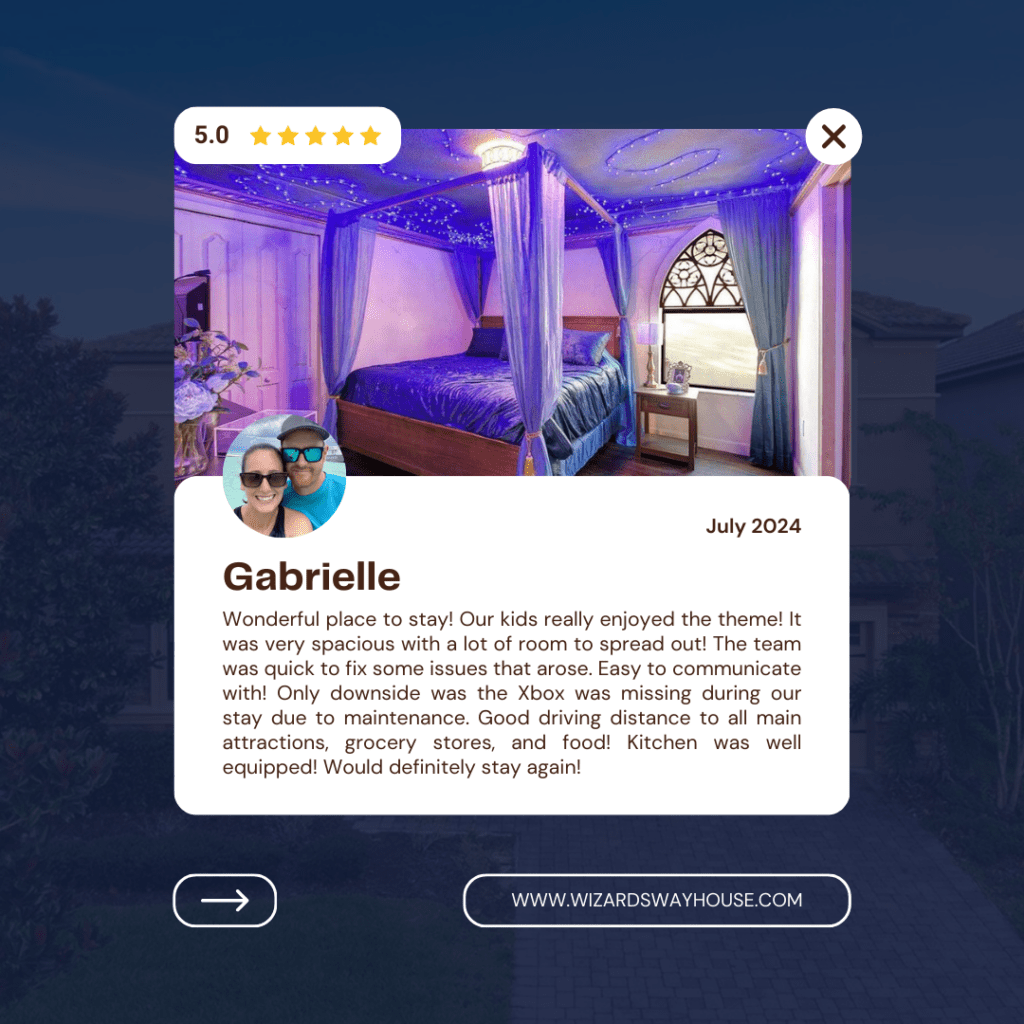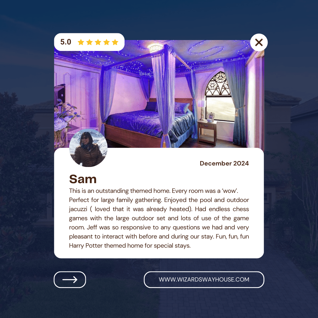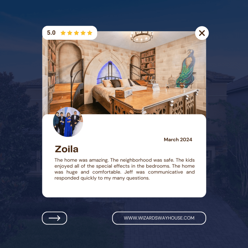 Book your stay at Wizards Way, the Orlando themed vacation rental that turns vacations into magical adventures. Don’t wait—secure your getaway today!